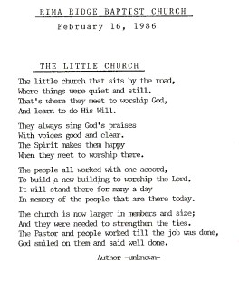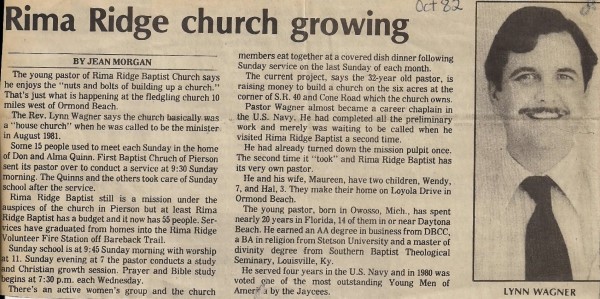 July 1981 - Called the first pastor, Lynn Wagner. Then changed order of service to having Sunday school before worship service. Started a Wednesday night prayer meeting.