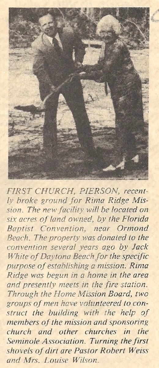 June 1980 - Mission Sunday School started by First Baptist of Pierson. They met at the home of Don & Alma Quinn on Appaloosa Lane. At the conclusion of Sunday school, the members would drive to Pierson for Worship Services.