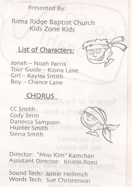 Children's Musical, "Go Go Jonah" ![]() ![]() ![]() ![]() ![]() ![]() ![]() ![]() ![]() ![]() go back to main 'Photos' page |